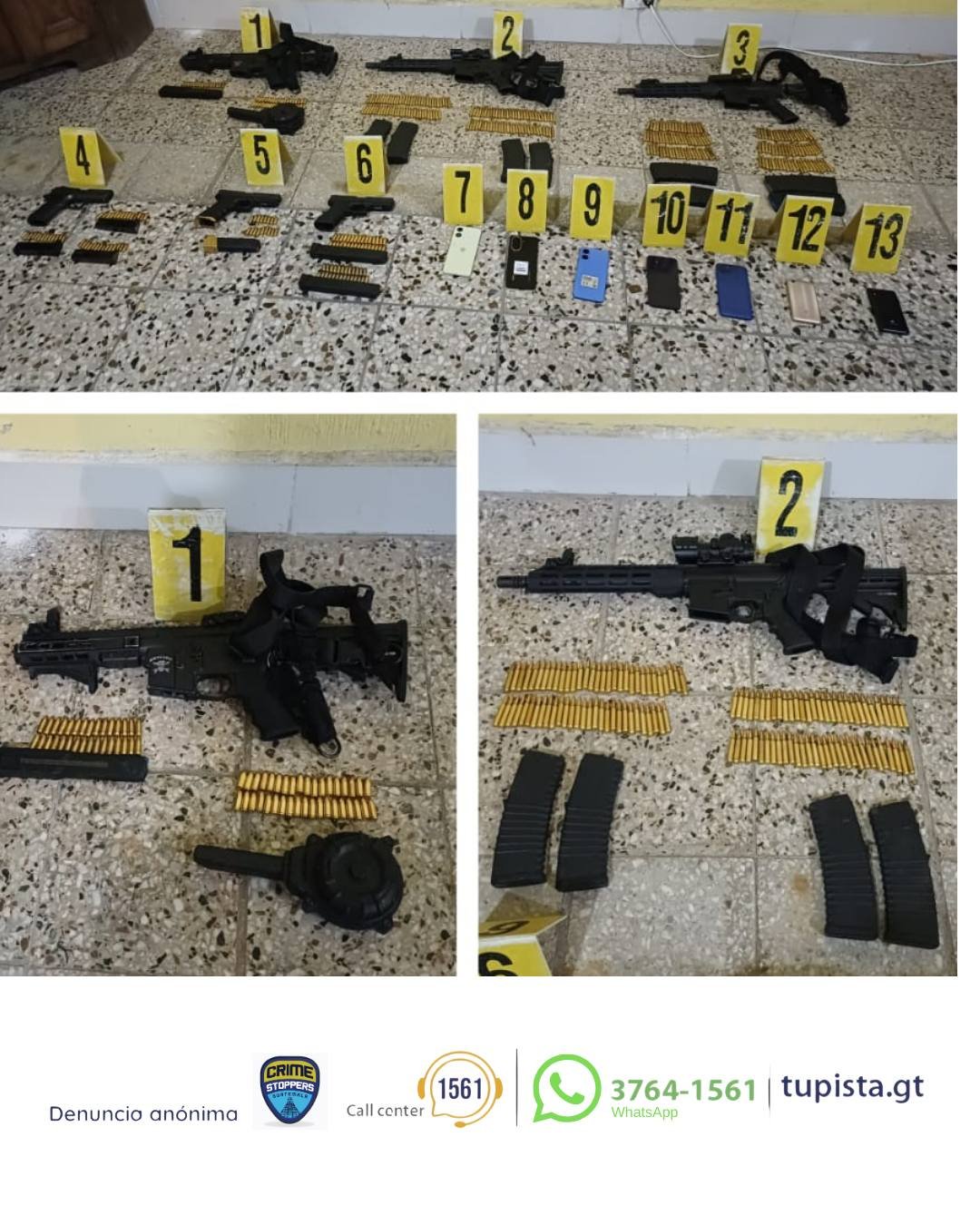 Allanamiento en Santa Elena Barillas dejó como resultado 4 personas capturadas, 6 armas de fuego (una con reporte de robo), droga, dinero en efectivo y teléfonos incautados.